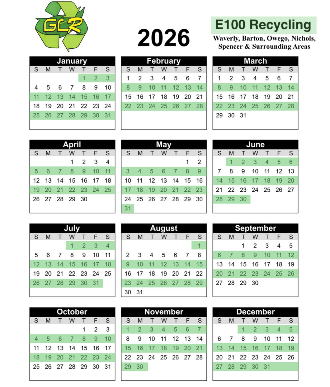 2026 Recycling Calendars By Area